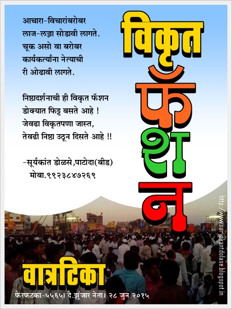 आजची वात्रटिका ---------------------------- ऑपरेशन फोडाफोडी आज यांचे त्यांचे फुटले, उद्या दुसऱ्याची बारी आहे ऑपरेशन फोडाफोडी, सगळीकडूनच जारी...